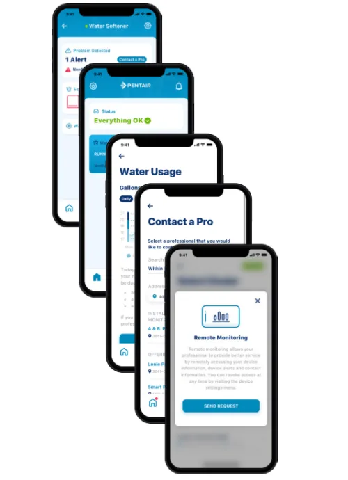 Discover a world of convenience with the latest Pentair XTRi-based water softeners. Paired with the Pentair Home app, it is your ultimate guide to caring for and maintaining the water filtration equipment in your house. Be informed of any issues before they become major problems – saving money on repairs or replacement fees should anything go wrong.