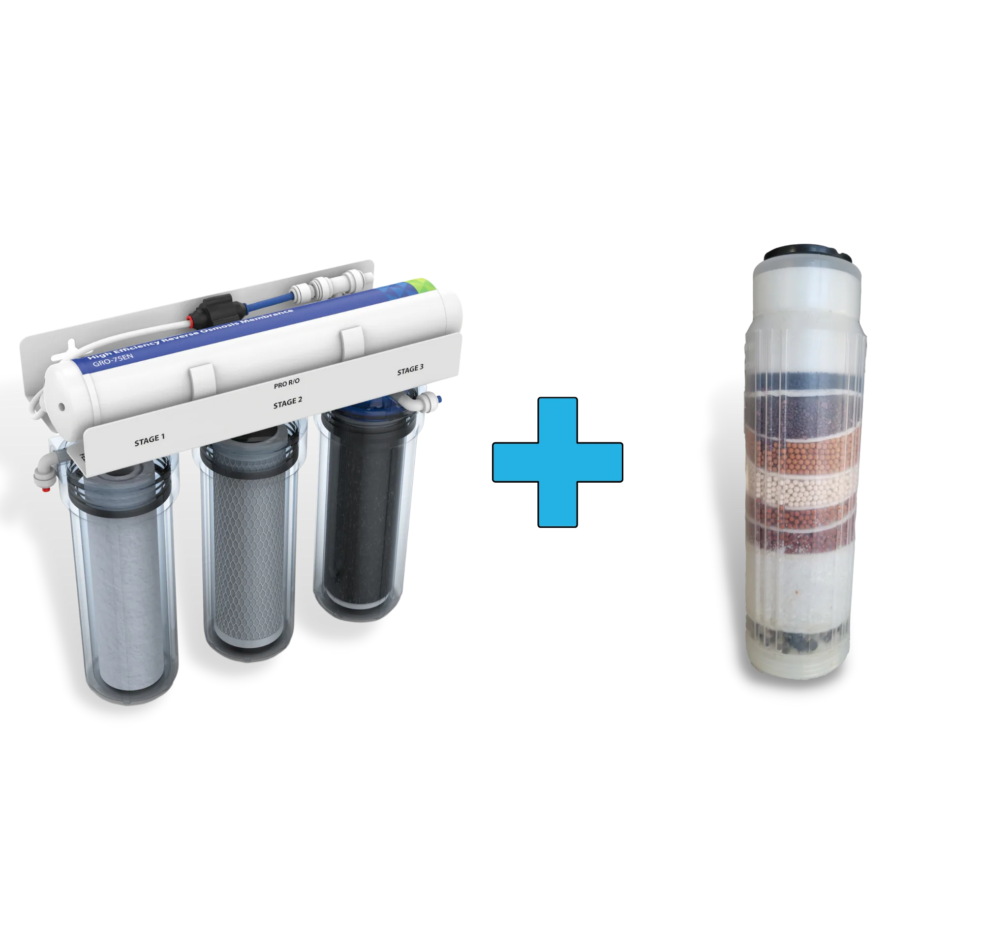 Our premium reverse osmosis system uses a green membrane with a 1:1 ratio of pure water to waste water, unlike competing systems using 1:4 ratio. Its 5 stage filtration and remineralization system produces great tasting, healthy water and is a cost effective and more environmentally friendly option compared to bottled water.