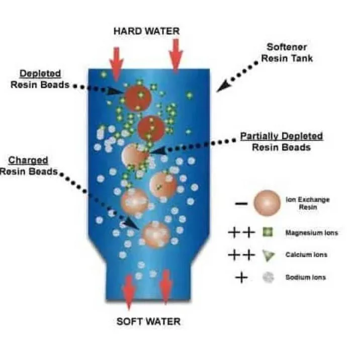 which functions by drawing in calcium and magnesium ions to small resin beads located within the tank. When these resin beads become saturated, the system will initiate an automatic cleaning and recharging process.
